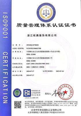 浙江歐騰服飾有限公司位于世界小商品之都-義烏。創(chuàng)立于2015年,是一家專業(yè)生產(chǎn)無縫針織運(yùn)動(dòng)服飾和內(nèi)衣的工貿(mào)一體企業(yè),擁有自主出口權(quán)。 工廠的占地面積約16000平方米 ,引進(jìn)了大型圣東尼、高騰等多種先進(jìn)的制衣設(shè)備300余臺(tái)。月產(chǎn)能可達(dá)90萬件。 歐騰服飾每年投入近百萬資金打樣開發(fā)新產(chǎn)品,有著一支高素質(zhì)設(shè)計(jì)、技術(shù)員工隊(duì)伍。工廠先后通過了ISO 9001質(zhì)量管理體系認(rèn)證、BSCI認(rèn)證、GRS認(rèn)證、OEKO-TEX國(guó)際生態(tài)紡織品認(rèn)證等多項(xiàng)專利檢測(cè)報(bào)告。可提供OEM&ODM服務(wù)。歐騰服飾以一套完整、科學(xué)的質(zhì)量管理體系,生產(chǎn)的服裝從原材料紗線到成衣,質(zhì)量完全能夠滿足國(guó)內(nèi)、國(guó)際質(zhì)量要求。獲得了客戶一致好評(píng)。工廠先后獲得省科技型企業(yè)、國(guó)家高新企業(yè)、義烏市誠(chéng)信講信用單位、規(guī)上企業(yè)、信用AAA級(jí)等榮譽(yù)。
